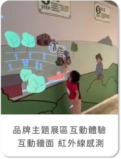 AI智慧去背拍貼機、快拍印、360全景語音虛擬導覽、全景VR720導覽、生物互動投影牆、3D彩繪魔法、AR擴增實境、VR虛擬實境、MR混合實境定位觸控導覽、Kinect體感互動遊戲、透明顯示器虛實整合、光雕投影、沉浸式投影、3D浮空投影、全息投影、電控薄膜投影系統、鏡面互動、QRcode闖關集點活動、線上數位專輯錄製/個人化封面製作、地板互動鋼琴/地板互動遊戲、多媒體互動觸控導覽電子書、IG hashtag拍照互動/照片輪播拼圖系統、蒙太奇照片拼貼