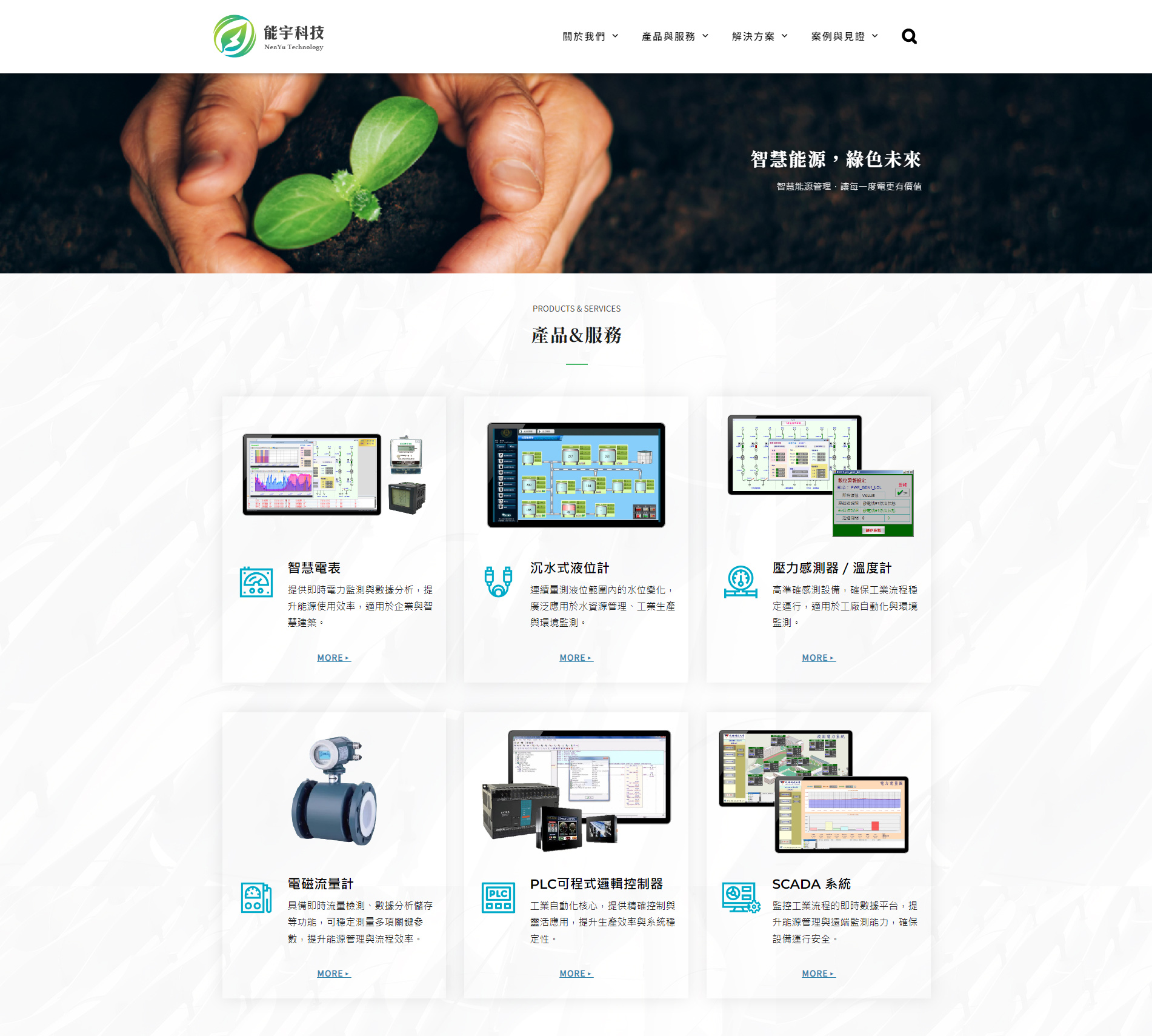 - 智慧能源/物聯網產業官網建置: 專為提供智慧電表、SCADA系統、PLC等解決方案的企業。