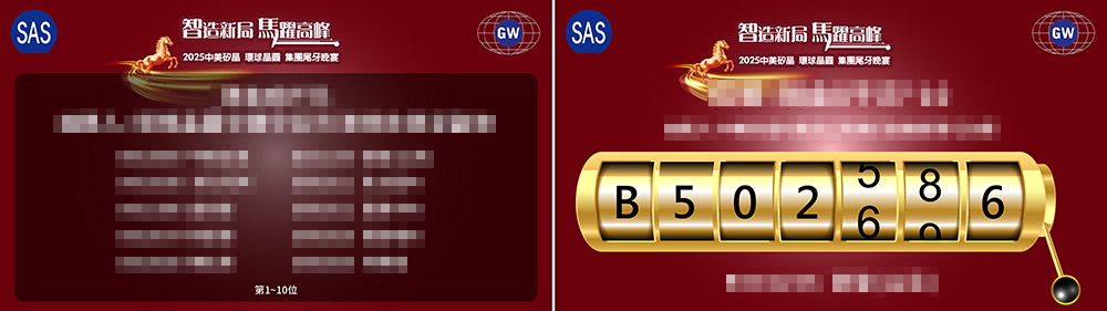 - 客製化抽獎條件:不論是分公司獎項、年資過濾或是臨時加碼獎,系統都能精準處理。大獎採用聚焦單抽,普獎則使用一般抽獎版型快速開出,完美掌控 2000 人盛會的熱鬧節奏。