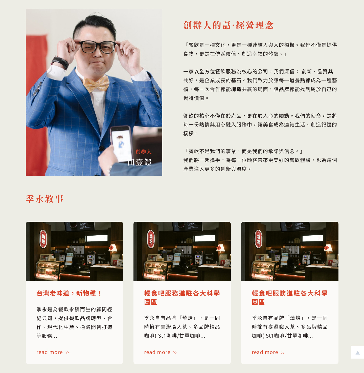 - 服務介紹: 季永提供的各項專業服務,從餐飲顧問、菜單規劃到營運管理,滿足多元合作夥伴需求。