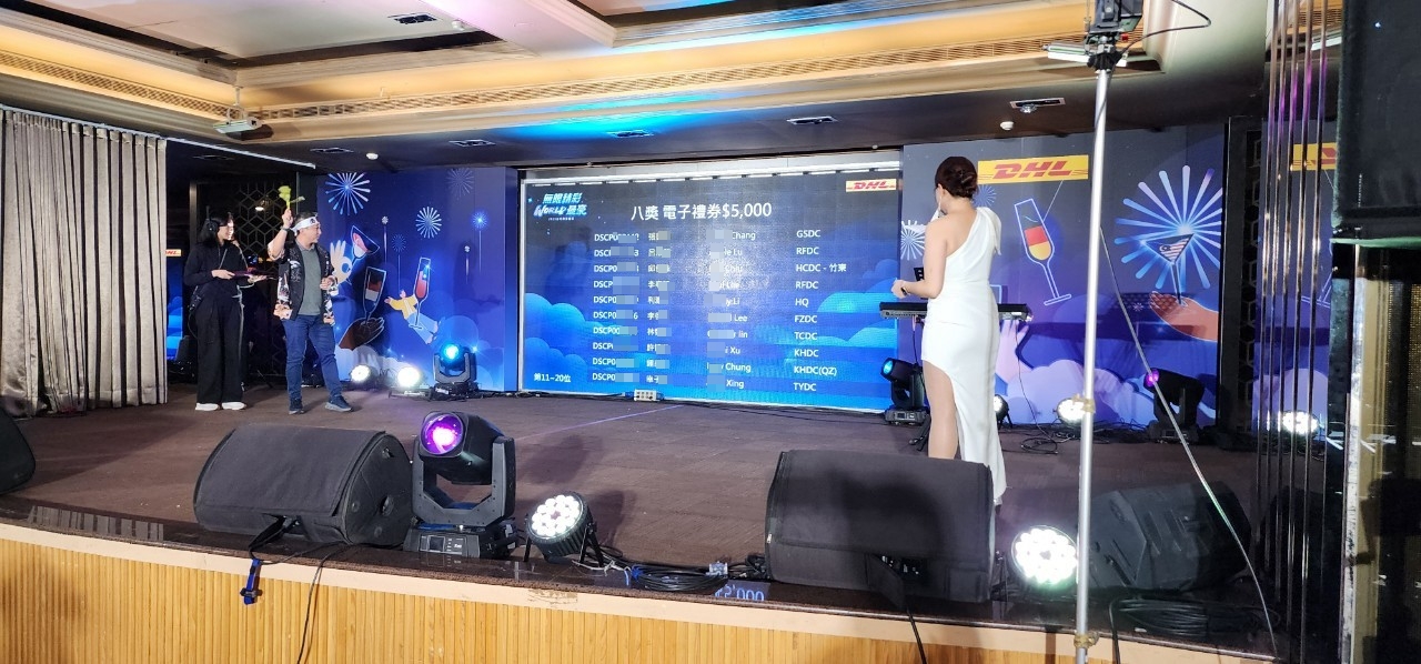 2025台灣敦豪春酒晚宴,高達900位員工入場報到使用藍訊「線上自行報到」加速報到流程,「客製化抽獎系統」打造專屬企業的抽獎體驗,「得獎查詢系統」為員工提供更便利的查獎服務,「互動票選系統」為員工提供便捷而即時的投票體驗,活動現場透過「快拍印」將員工現場拍攝的照備列印出來留下獨特的回憶,創造與眾不同的活動體驗!