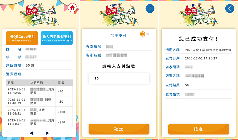 志聖運動大會宣布:全面進入無現金交易時代!傳統園遊券?淘汰!員工使用手機裡的數位點數,即可在所有攤位「掃碼即買。這不僅是ESG 無紙化消費的極致體現,更讓主辦方能瞬間掌握每一筆消費流向,實現數據化、透明化的活動管理。