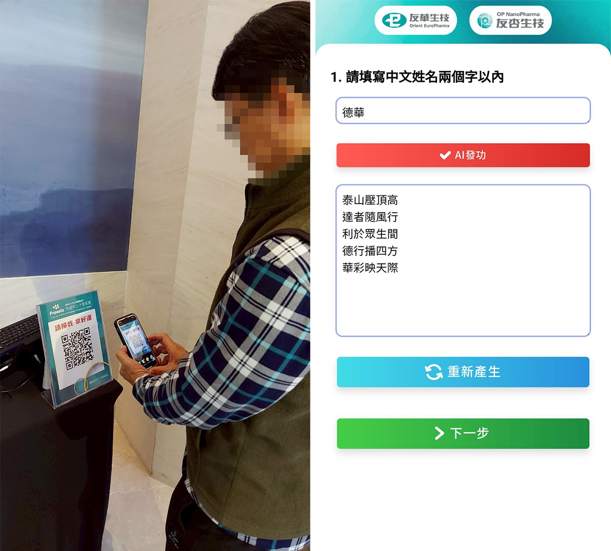 活動現場,員工只需以手機掃描QRCode,即可進入專屬的AI藏頭詩生成頁面。系統預先設定將公司名稱「