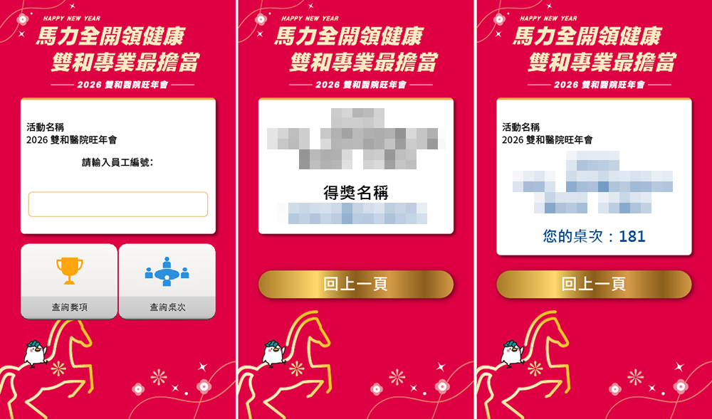2026雙和醫院旺年會-3000人客製化抽獎系統+查詢獎項+查詢桌次+馬賽克過場動畫