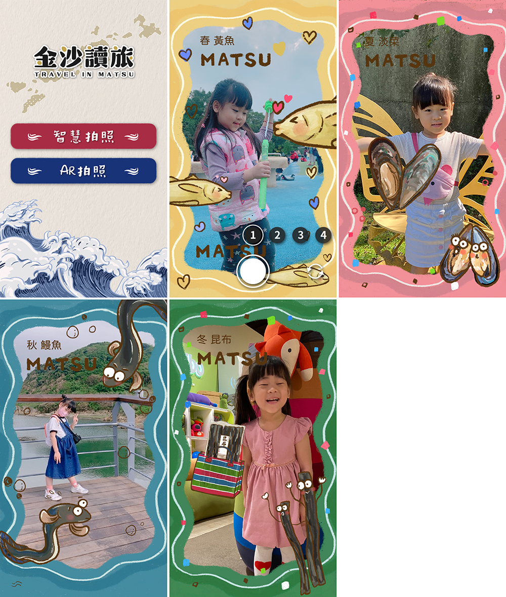 透過藍訊科技導入的AR擴增實境技術,為「金沙讀旅」帶來獨特的互動拍照體驗,於互動拍照系統中打開手機相機,就能拍攝出充滿趣味的合成照片,大大增加與在地文化的互動性與創意性,提供豐富有趣的拍照視覺效果。這些合成照片不僅可輕鬆下載,還能直接分享至社群媒體,留下您與馬祖的美好瞬間。這不僅成為推廣聚落故事的觀光互動亮點,也讓旅行充滿趣味,更能藉由新穎的科技應用,讓青年族群更容易親近馬祖在地文化,創造難忘的回憶。
