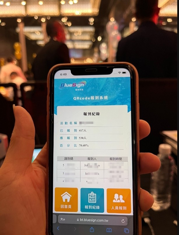 - 一秒掃碼完成:抵達現場後,同仁只需出示手機畫面,掃描儀即可在瞬間完成身分核對,完全取代紙本簽到,讓 150 人的進場動線流暢優雅,展現企業的高效風範。