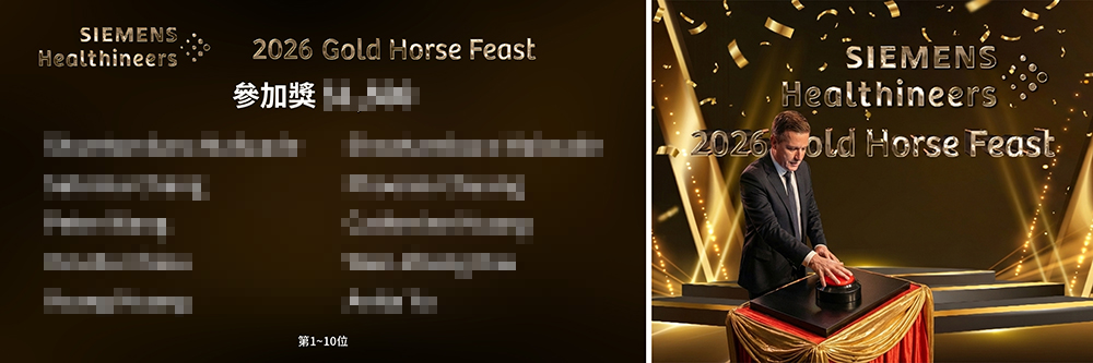 - 專屬品牌視覺設計:藍訊科技為其開發「客製化抽獎系統」,畫面視覺深度融合西門子醫療的企業識別,讓每一座獎項的跳動都充滿品牌質感。