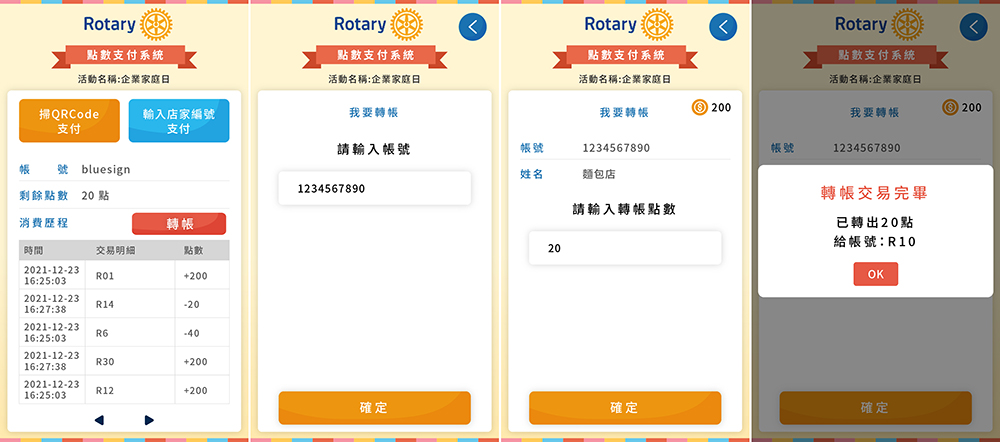 - 支援點數轉贈、查詢、消費紀錄追蹤
