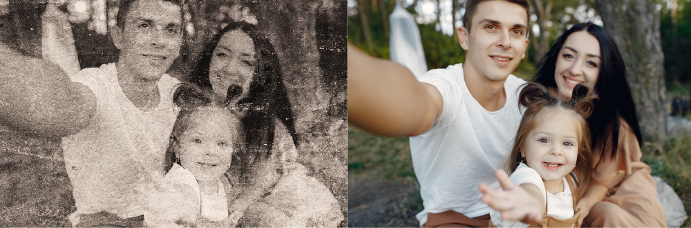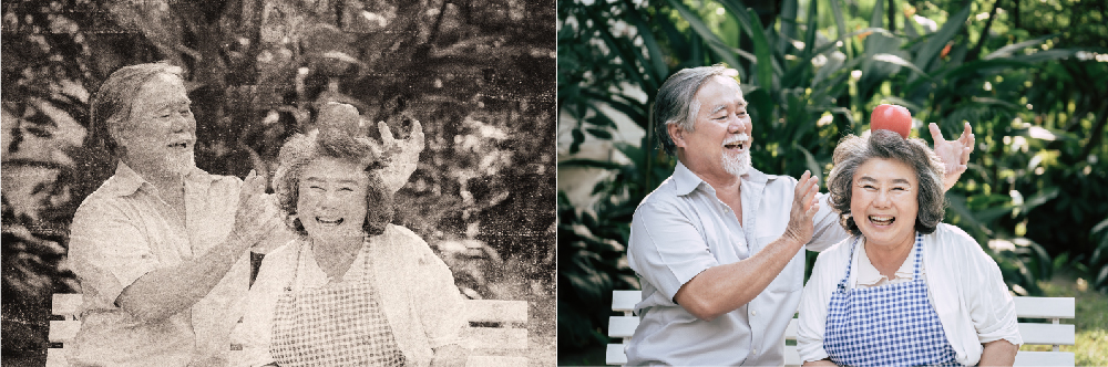 無論是 撕裂破損、發霉、褪色、起皺 的照片,【拾光記憶館】都能以AI精準修復。