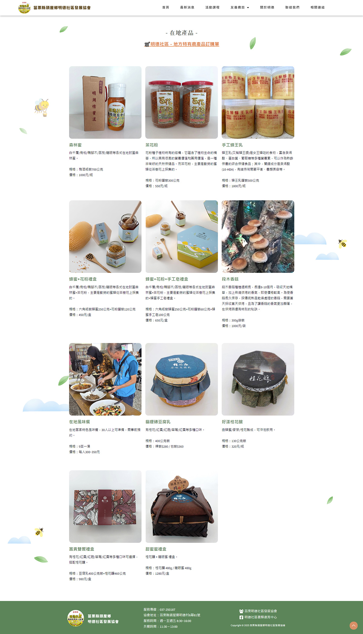 - 關於明德:深入介紹苗栗縣頭屋鄉明德社區發展協會的願景、推動的友善環境行動,以及在教育學習(如樂齡學習、數位教室手機教學)、傳統文化(客家擼福菜、冬至搓湯圓等)、健康促進及長幼共學(食農教育)等方面的豐富服務內容。