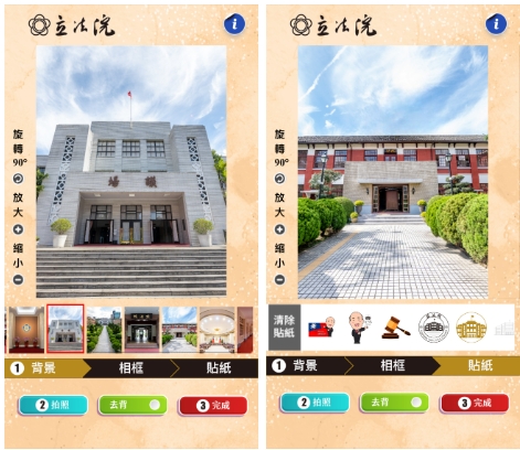 立法院訪賓智慧互動拍照服務,透過掃描現場提供的QRCode,來賓即可使用自己的手機開啟智慧去背拍照頁面