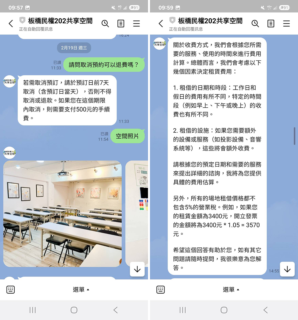 「AI智慧客服機器人」為提供更高效的客戶服務體驗,AI智慧客服機器人的導入讓民權202共享空間能實現24小時不間斷的自動化回覆。無論是空間租借、服務諮詢,甚至特定問題,AI機器人都能即時回應,有效降低人力成本,提升客戶滿意度,是智能客服的絕佳應用。