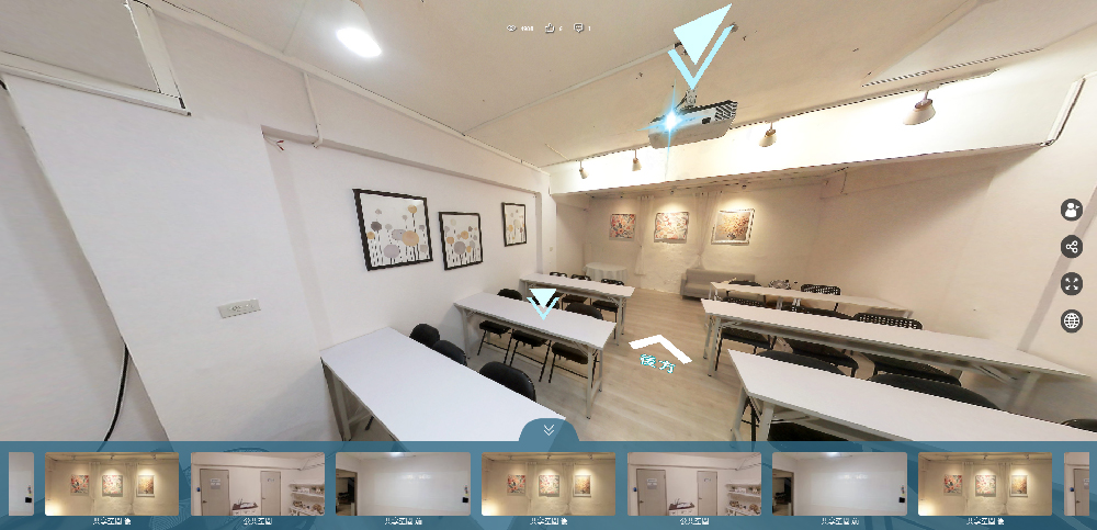 「360線上環境語音導覽」作為本次專案的亮點之一,藍訊科技為民權202共享空間引入了創新的360全景語音導覽系統。透過高解析度的360度環景影像結合專業語音解說,潛在客戶無需親臨現場,即可身臨其境地線上探索空間的每一個角落,大幅提升空間的吸引力與透明度,是線上導覽系統在共享辦公領域的完美應用。